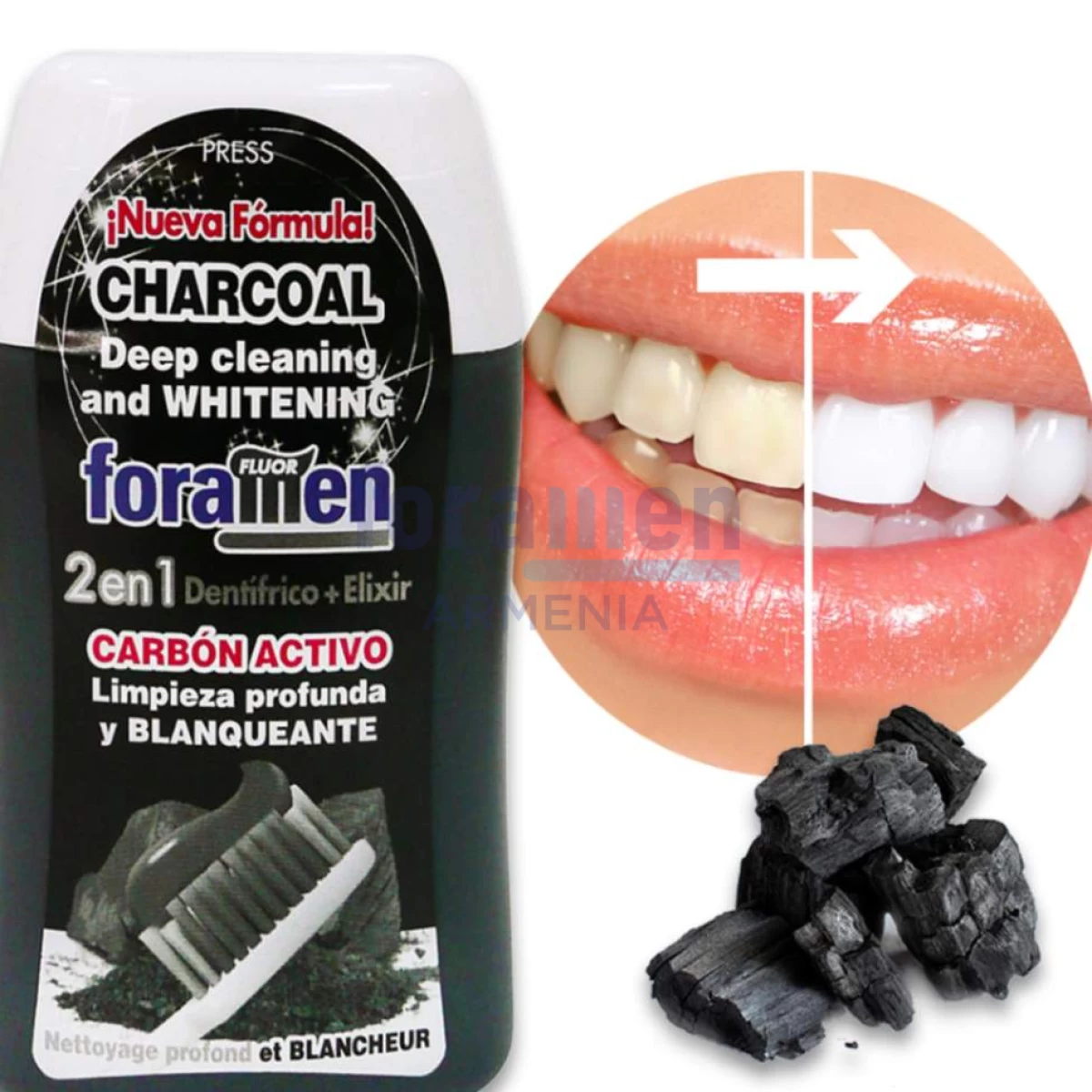 «Akimport» company, the official Armenian representative of the Spanish «Foramen» brand (or Foramen.am online store, or Foramen Armenia) presents «Activated Charcoal» 100ml toothpaste-elixir 2/1. Foramen.am online store presents the widest range of high-quality products for the care and treatment of the oral cavity produced in Spain. The delivery of the products is organized directly by Foramen Armenia and a free consultation service for various problems of the oral cavity is provided by experienced and knowledgeable specialists. Dear clients, especially for you, delivery is free in the standard version, regardless of the value of your purchases.
